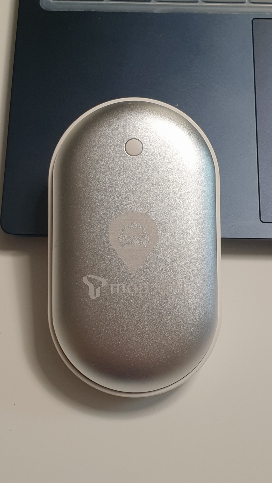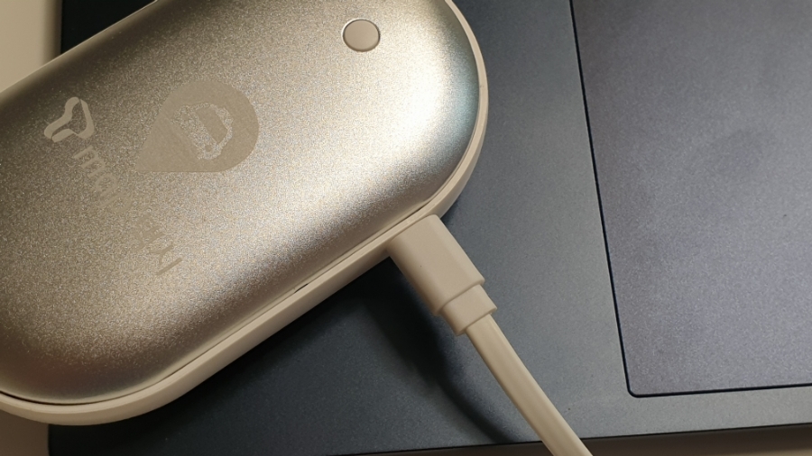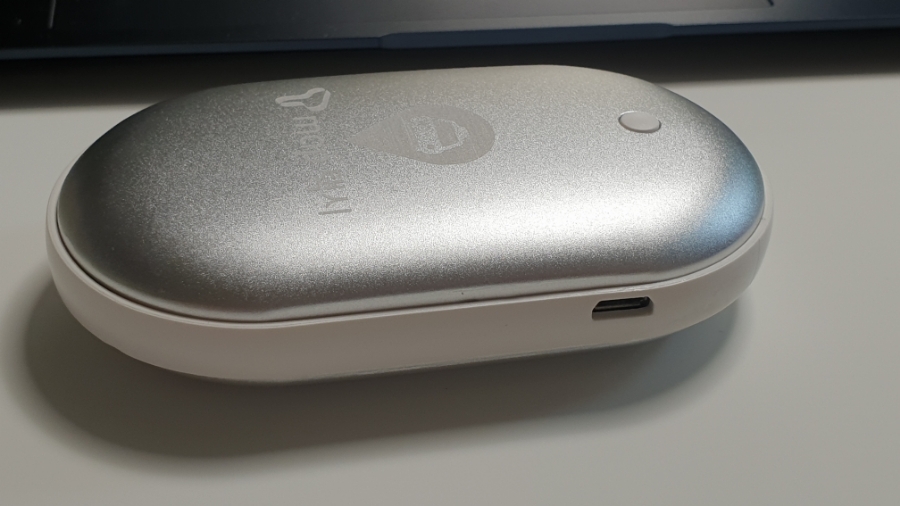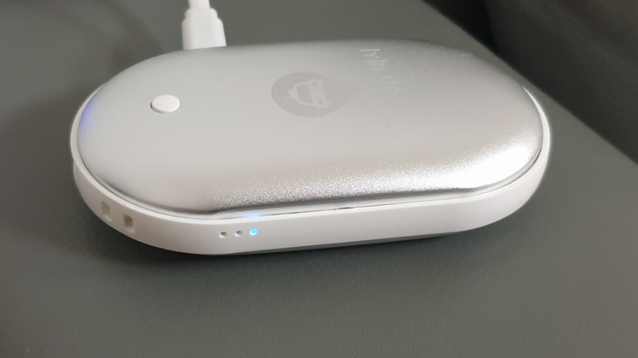 구성품은 본체와 마이크로 5핀 케이블로 구성되어 있습니다. 본체는 회색 바탕에 흰색 플라스틱 테두리가 되어 있네요. 회색 바탕은 강철 재질로 되어 있어 열전도율이 좋게 만든 것 같아요. 제품 앞면에는 전원버튼이 있어서 전원 버튼으로 손난로 기능을 On/Off 할 수 있습니다. 마이크로 5핀 충전 케이블은 길이가 짧아서 사용하기에는 조금 불편하기는 하지만 사용에는 문제가 없어요.