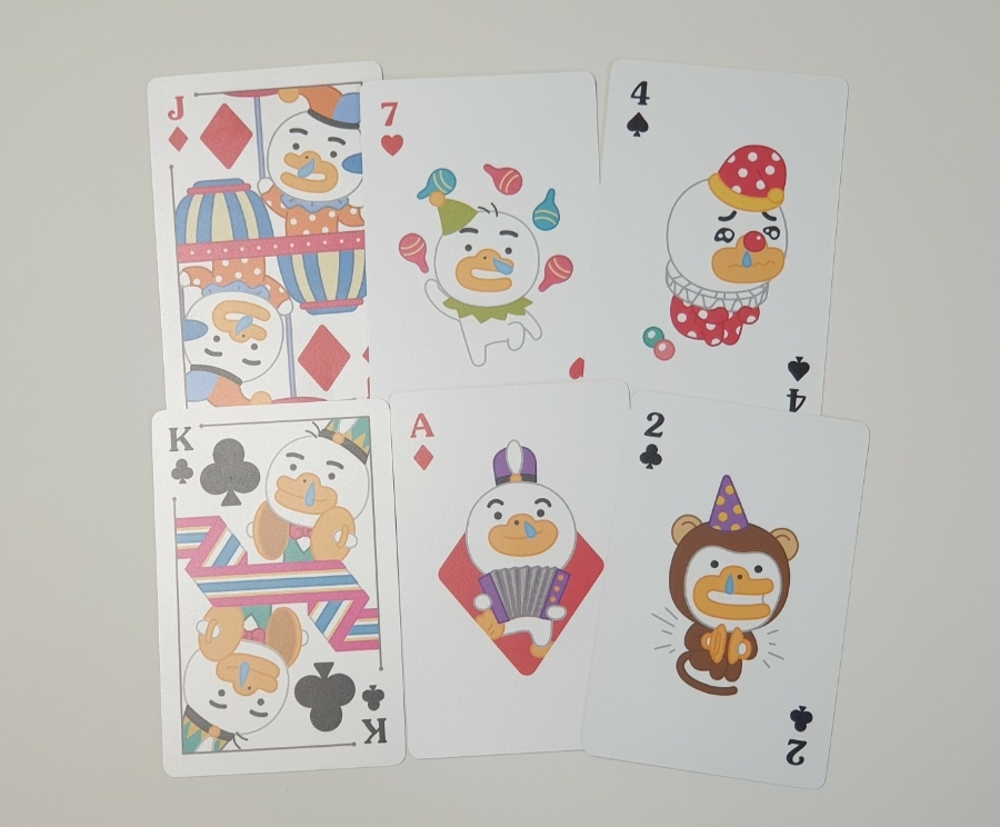 다음은 제이지 입니다. 제이지 카드도 총 6장이구요. 역시나 조커 카드가 포함되어 있습니다. 제이지 카드는 조커 제이지와 돌고래 쇼하는 제이지, 접시 돌리는 제이지 등이 그려져 있어요.