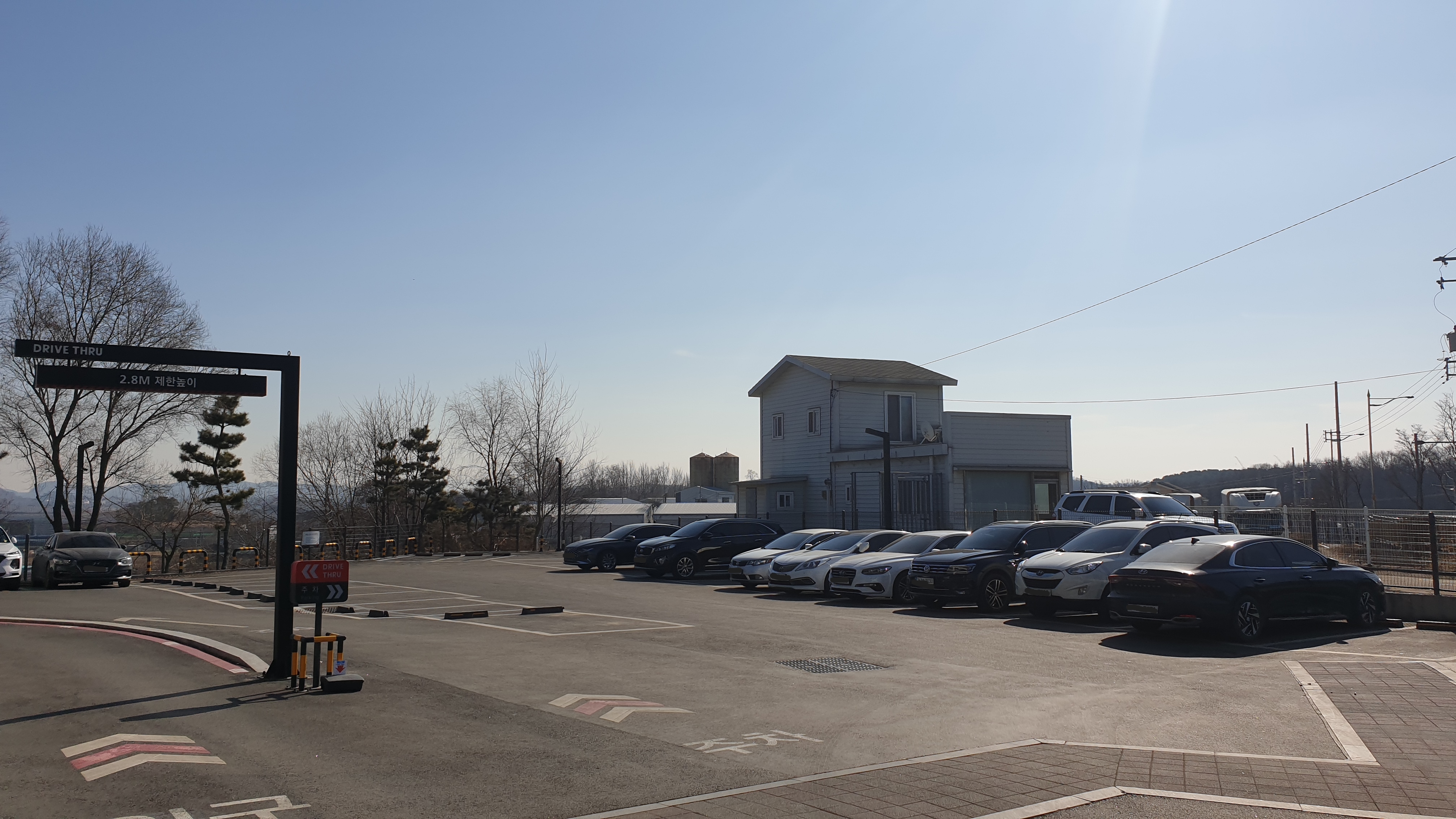 아래 사진의 왼쪽은 드라이브 스루고요, 오른쪽은 주차장입니다. 사진에서 보이는 것과 같이 주차장이 넓어서 주차하기는 편하더라구요. 정확하게 세어보지는 않았지만 한 20대는 주차 할 수 있는 것 같아요.