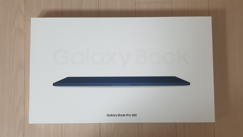 화이트 박스에 갤럭시북 로고, 닫혀 있는 갤럭시북 프로 360 사진으로 디자인 되어 있어요.