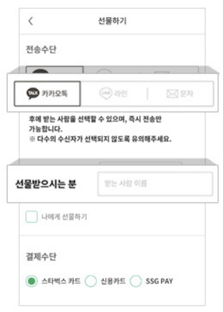 카카오톡, 라인, 문자 전송수단으로 마음을 간편하게 전하세요.