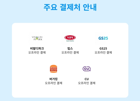 제휴된 업체는 편의점부터 골프존, 카페, 레스토랑 등이 있습니다.