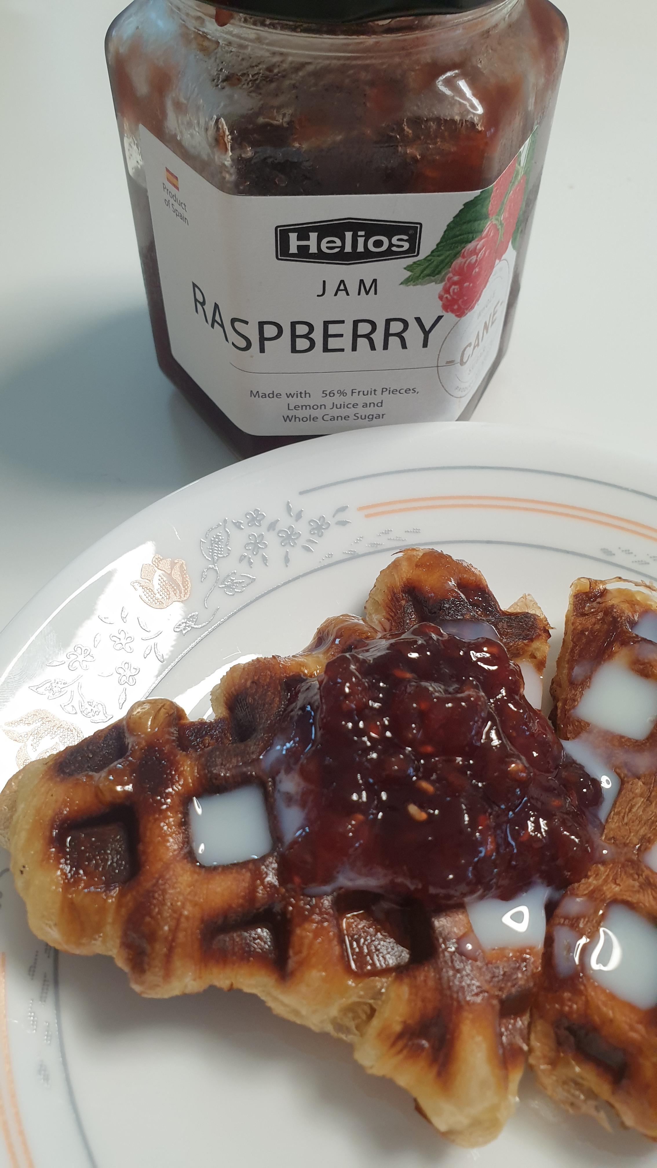 라즈베리 잼과 연유와 같이 먹으면 맛있어요.