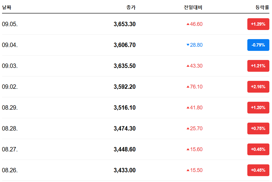 - ์ต๊ทผ ํ ๋ฌ ์์น๋ฅ : ์ฝ 7~8%